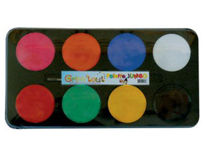 Palette maquillage oz international carnaval grim'tout contient 1 éponge 1 pinceau 1 guide 9 coloris assortis